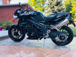 2009 Triumph Speed Triple. Single owner, well maintained with all service records. Upgrades include: belly pan, fly screen, radiator guard, frame sliders, fork sliders, engine casings, upgraded seat, passenger seat cowl, pazzo levers, Triumph OEM race exhaust cans. Will sell with original OEM seat and OEM exhaust cans included.